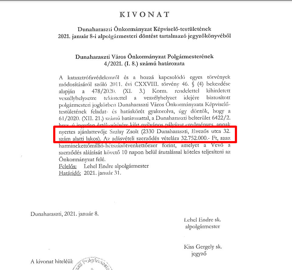az anyagot az önkormányzattól, mert így már nem tudják letagadni egy esetleges büntetőügyben.